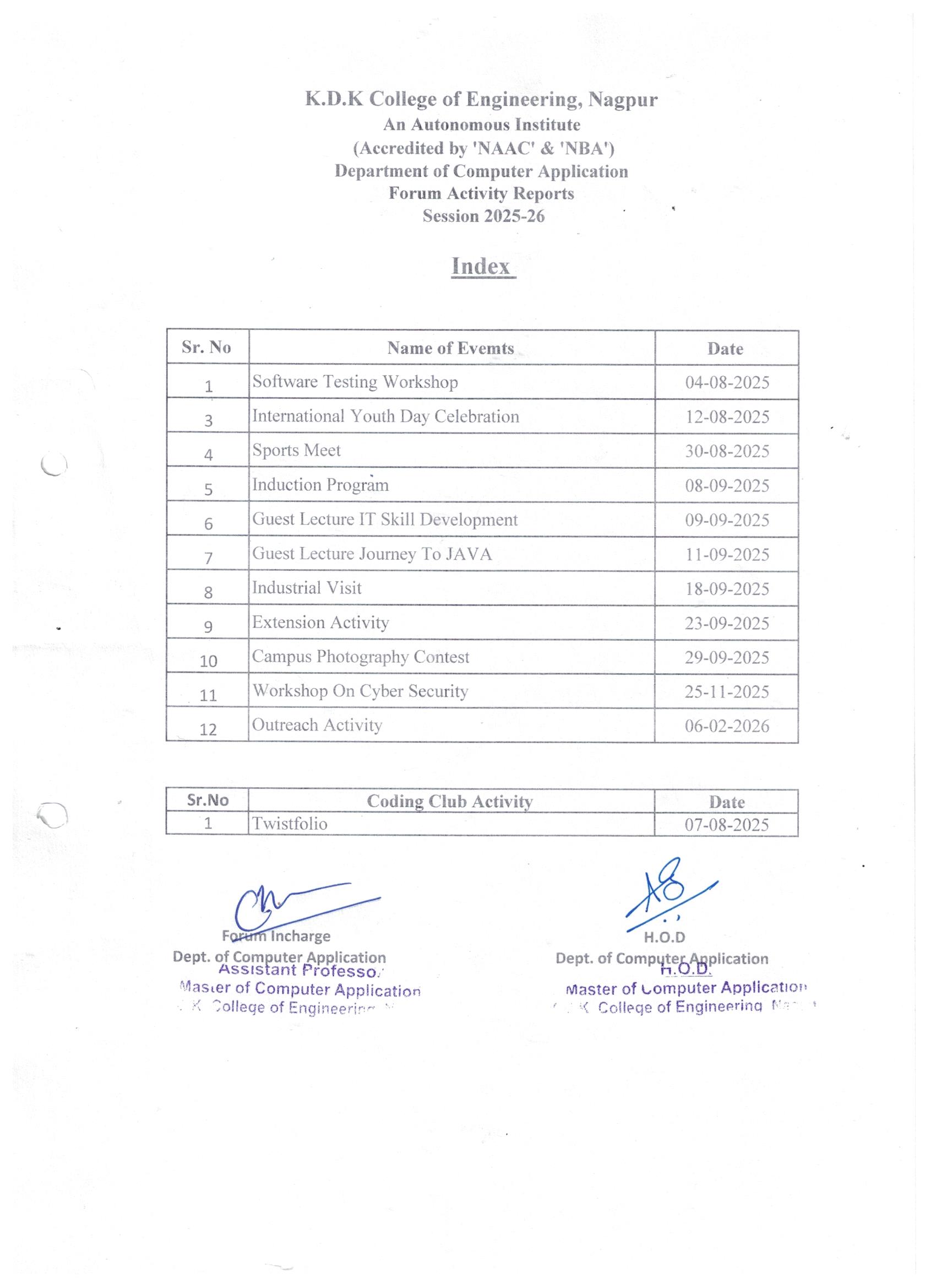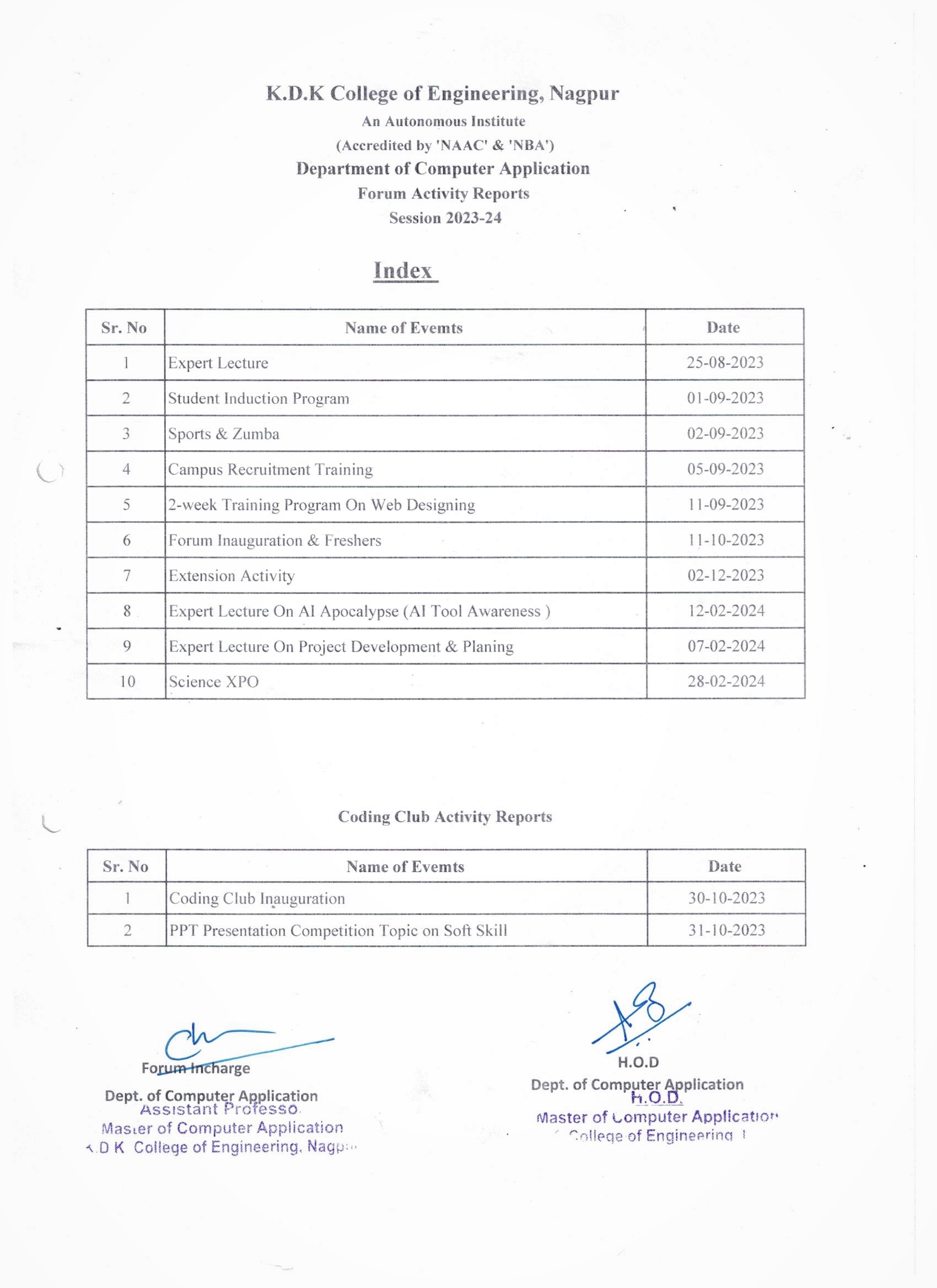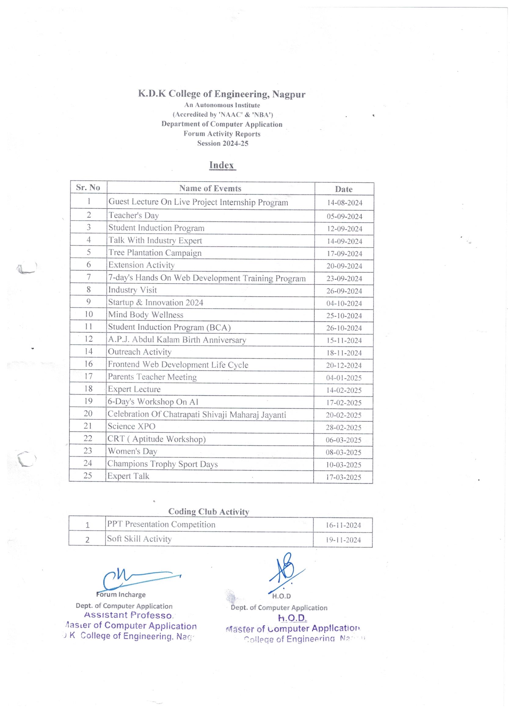 Events conducted